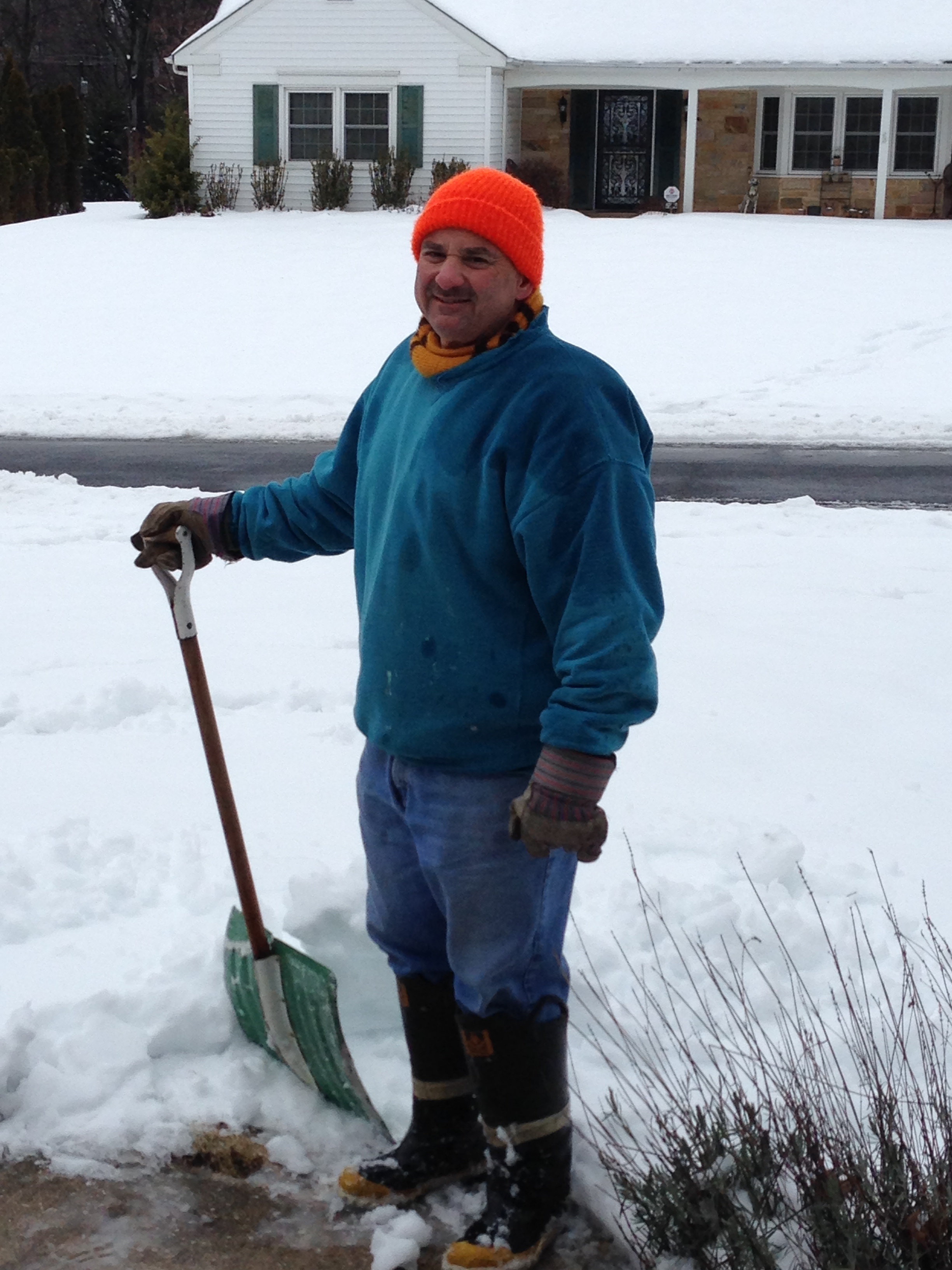 When I finally awakened at 8:00 a.m. and he still wasn’t home, I jumped up and looked out of the window. There he was, shoveling himself back ONTO the driveway. The plows had done a nice job on the streets, but you know what that means? A very large and icy ridge at the bottom of the driveway. Once he had made enough clearance to get his car off the street, he came inside…to go to bed, I thought, since he had now been awake for 27 hours. “How was your evening? Did you stay busy? I re-set the electric blanket and it’s ready.”